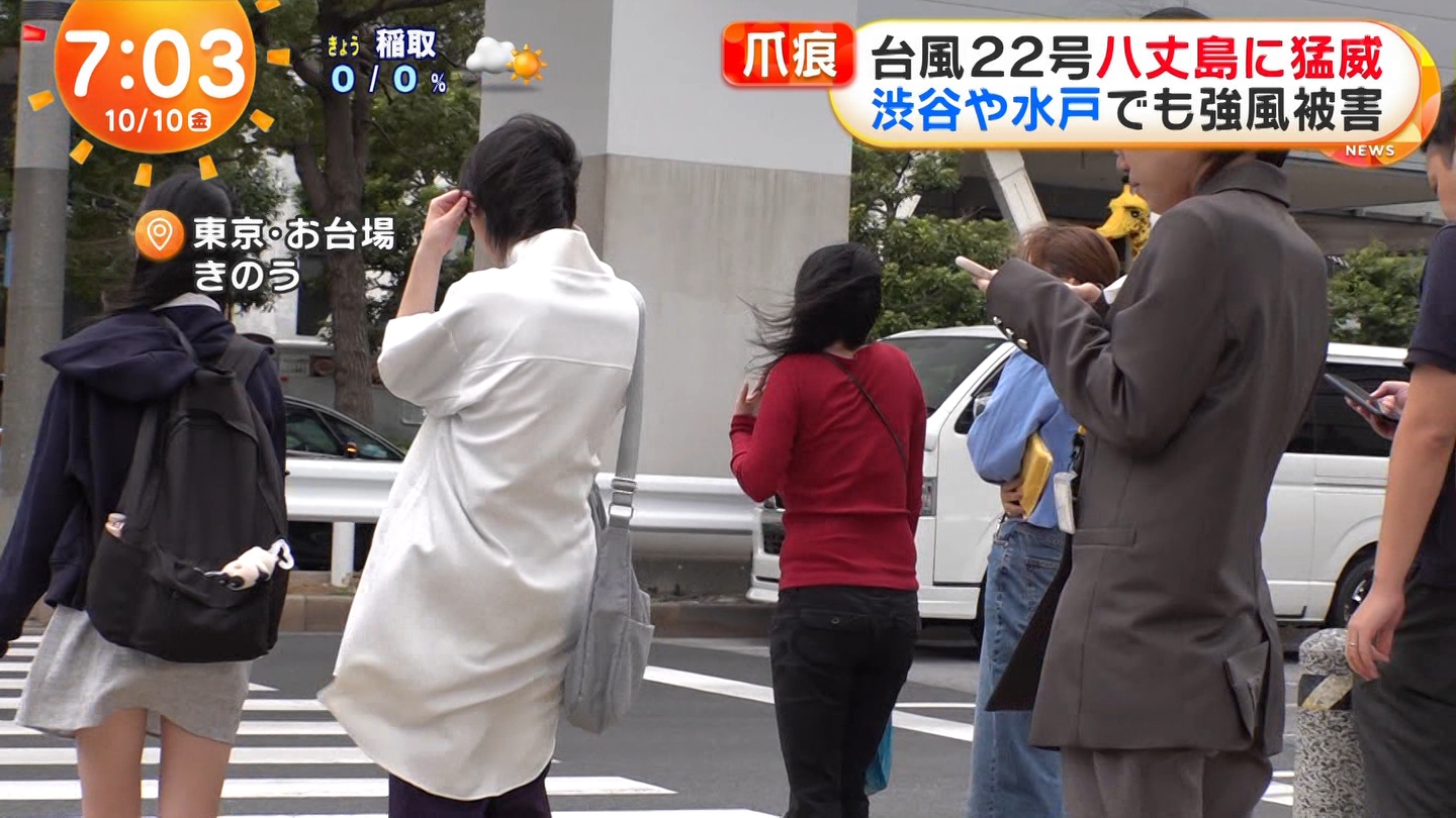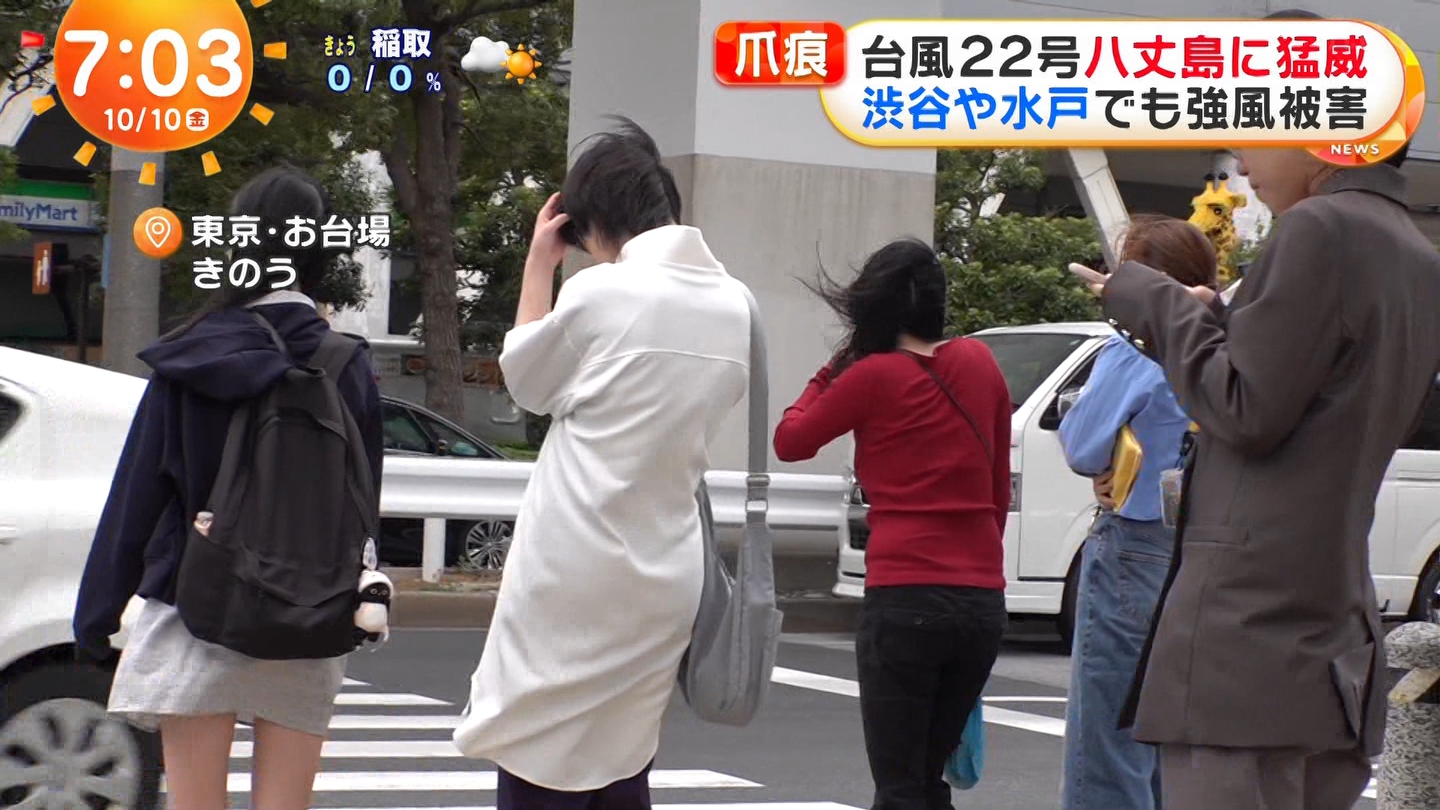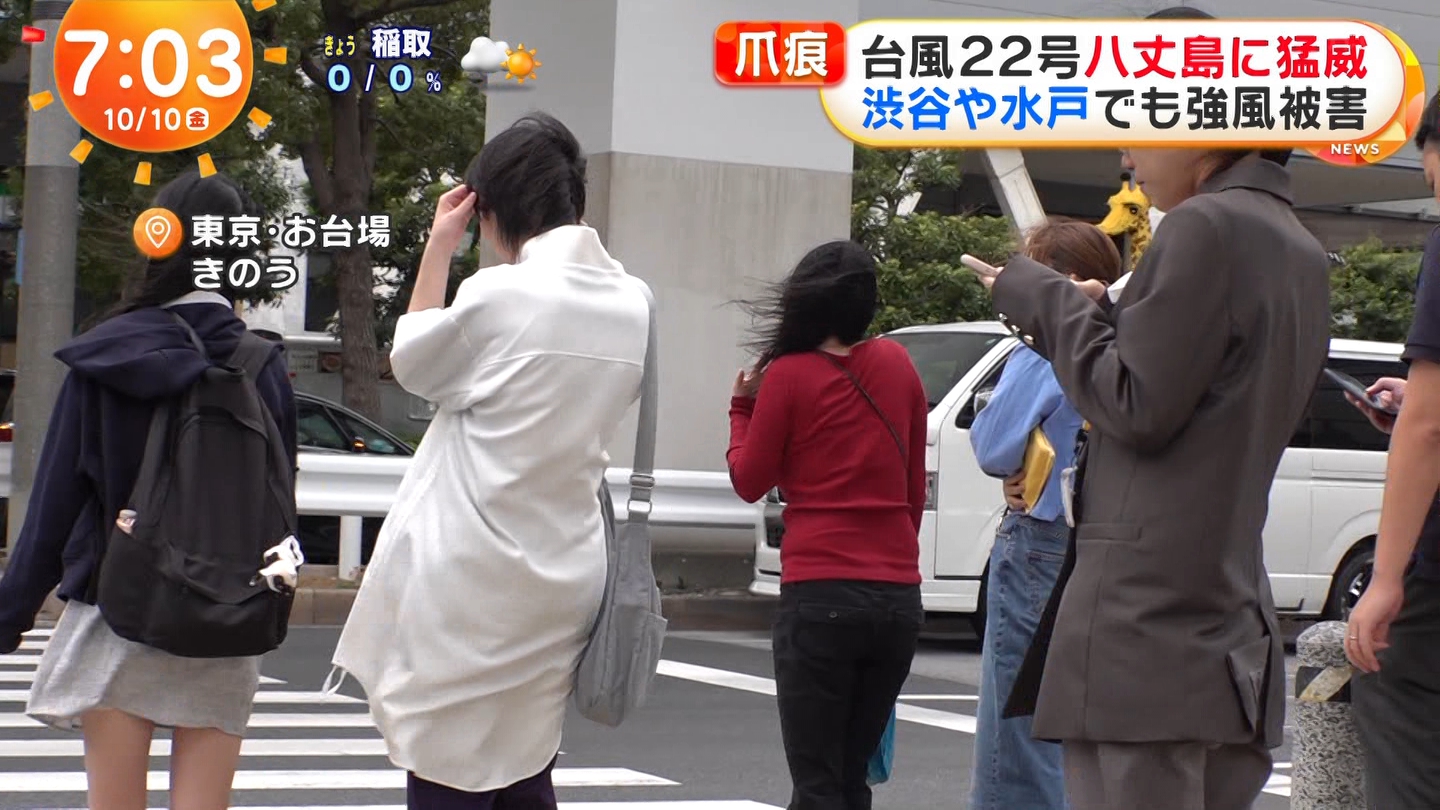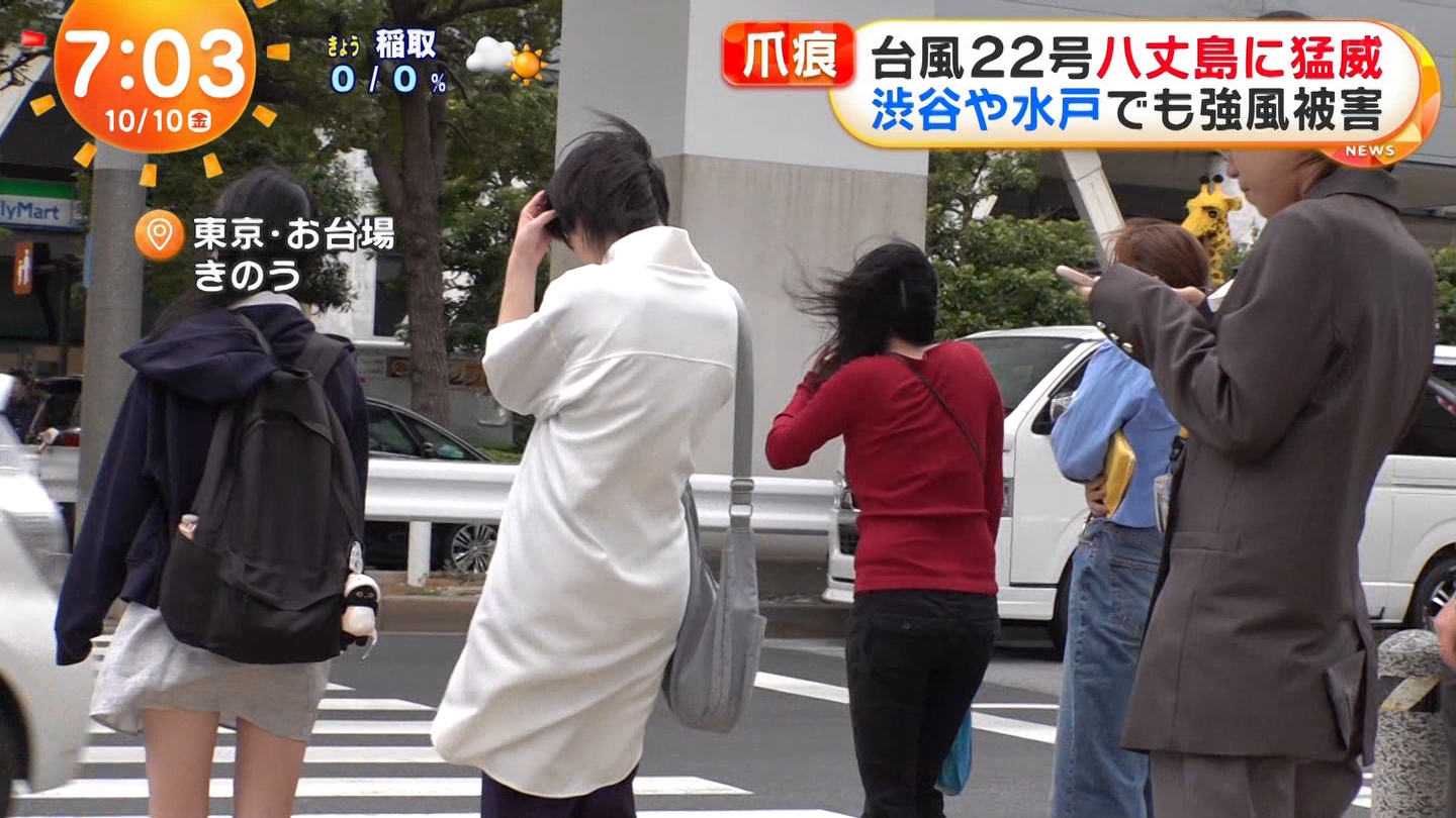 めざましテレビの台風22号生中継で女子のスカートがめくれる放送事故